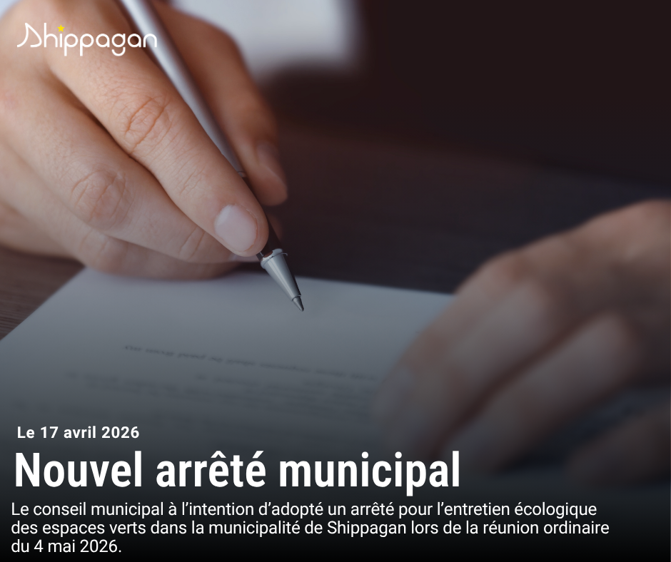Le conseil municipal de la municipalité de Shippagan a l’intention d’adopter un nouvel arrêté pour l’entretien écologique des espaces verts dans la municipalité de Shippagan (Arrêté no 07-2026) lors de la réunion ordinaire du 4 mai 2026.